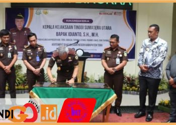 INDIGONEWS - Bupati Kabupaten Toba, Effendi Sintong Panangian Napitupulu didampingi Forkopimda menyambut kedatangan Kajati Sumut, Idianto di Kantor Kejaksaan Negeri Kabupaten Toba. Penyambutan tersebut ditandai dengan pengalungan stola oleh Bupati Toba kepada...